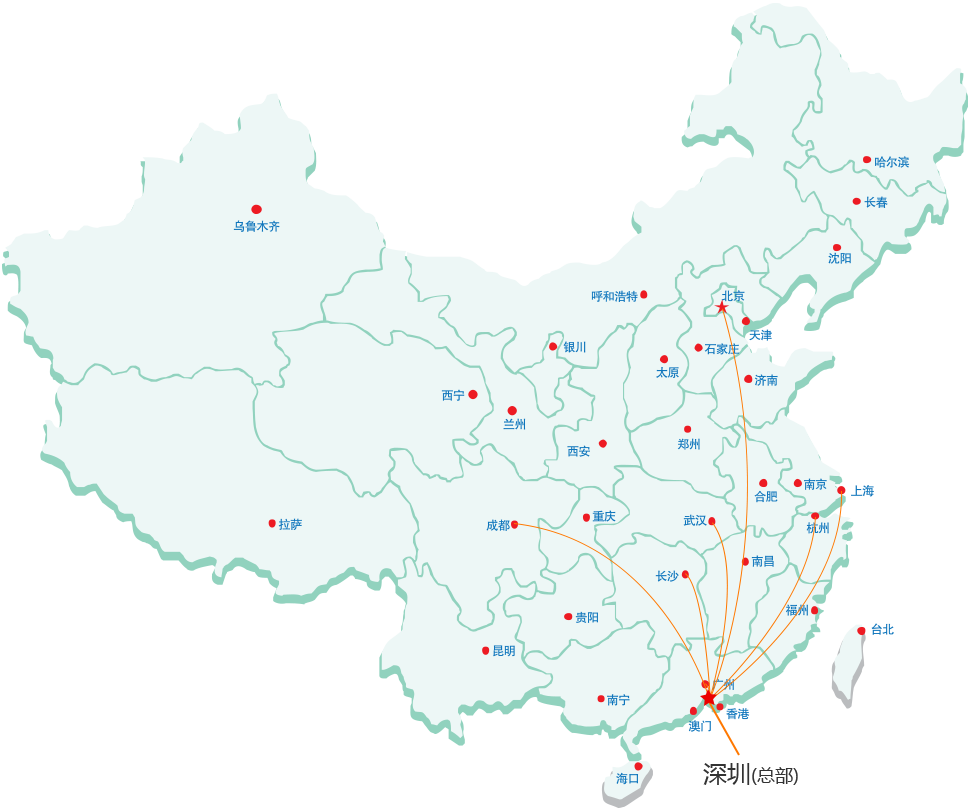 我們的服務(wù)區(qū)域輻射全國所有省會(huì)城市以及所有二三線城市,覆蓋全國大部分四線城市和縣城,以及十幾個(gè)境外區(qū)域。